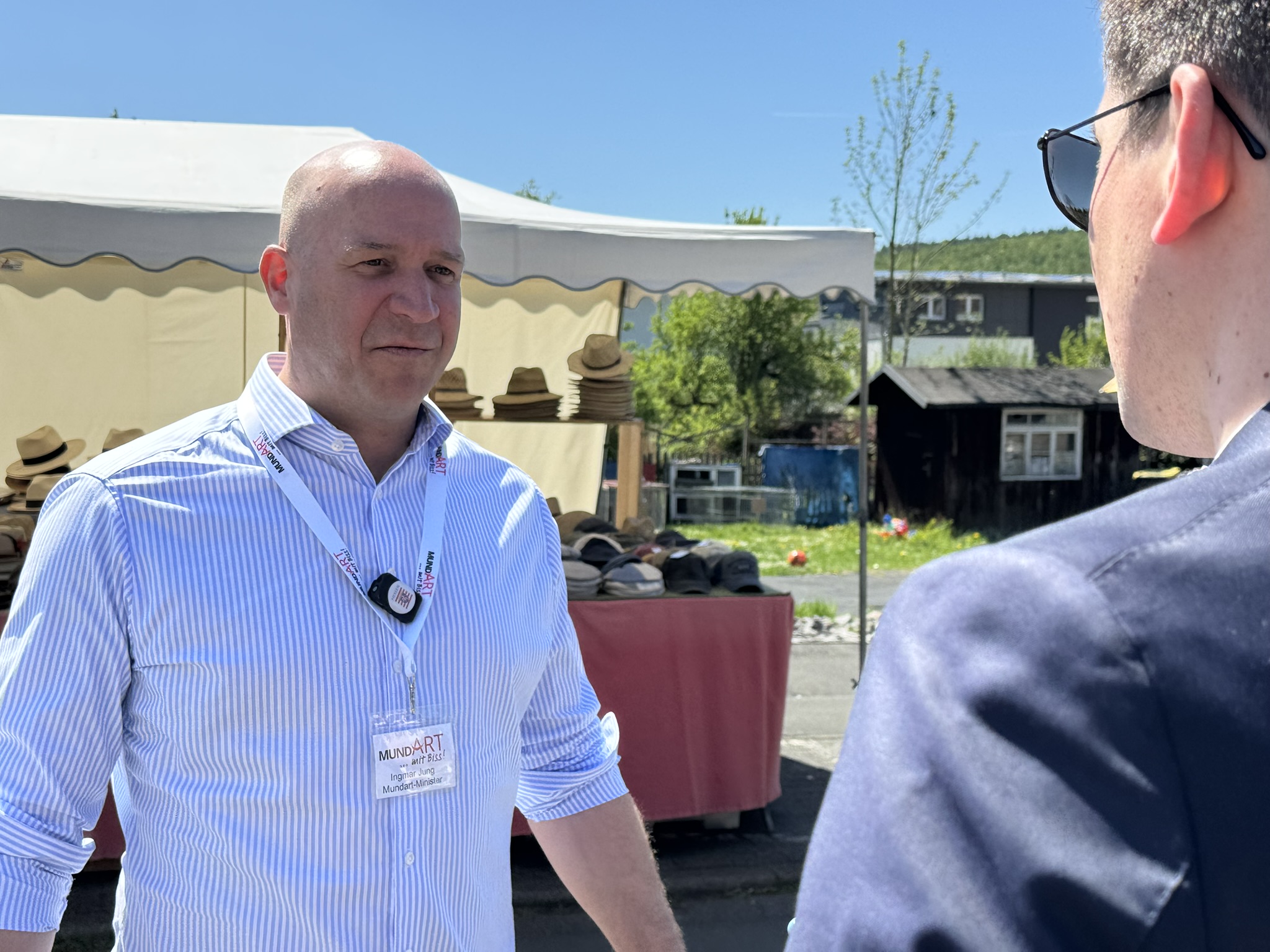 Für Einheimische war es neu, das Interesse von auswärts größer… Hessens Heimat-Minister Ingmar Jung hat die Gemeinde Eschenburg nun zum zweiten Mal in Sachen Mundart besucht. Diesmal startet „MundART mit Biss“ als jährliche Freiluft-Fete in der Gemeinde Eschenburg. Und das Hessische Ministerium für Landwirtschaft und Umwelt, Weinbau, Forsten, Jagd und Heimat zeigt deutlich, dass das Thema Mundart dabei eine wichtige Rolle spielt.